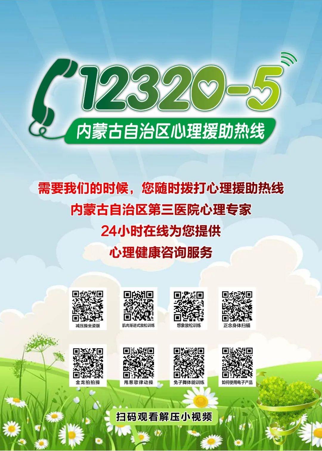 呼和浩特市:12320-5心理援助热线24小时服务